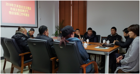 元旦期間,正當(dāng)人們沉浸在節(jié)日的喜慶中時(shí),五里店果蔬批發(fā)市場(chǎng)內(nèi)車水馬龍,交易井然有序,在這一派繁忙景象背后,是萬(wàn)禾市場(chǎng)管理公司以及五里店市場(chǎng)全體同行的辛勤付出。12月30日下午,萬(wàn)禾黨總支五里店市場(chǎng)支部召開(kāi)了“高寒天氣物資保障工作布置會(huì)”,會(huì)議部署五里店果蔬批發(fā)市場(chǎng)加強(qiáng)市場(chǎng)監(jiān)測(cè)和產(chǎn)銷銜接,確保極端高寒天氣下市場(chǎng)果蔬等主要農(nóng)產(chǎn)品的正常供應(yīng)。在這次工作中,黨員同志起到了先鋒模范作用。