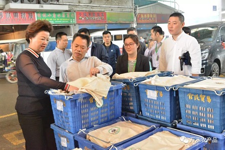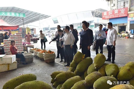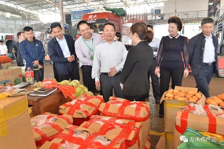 (桂林市政府副市長黃加才一行領(lǐng)導(dǎo)與萬禾副總經(jīng)理李小濱在市場走訪調(diào)查)