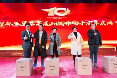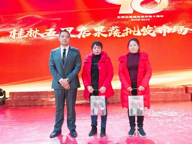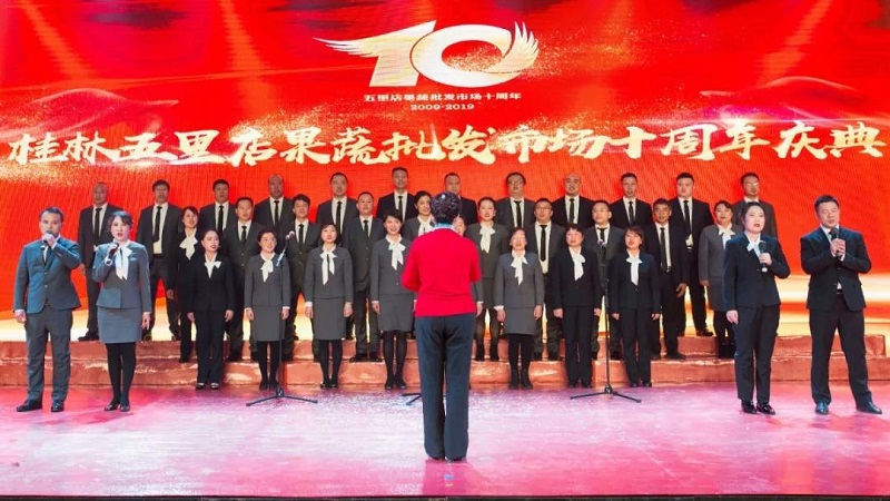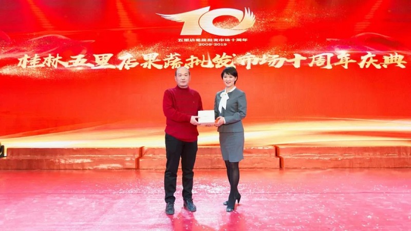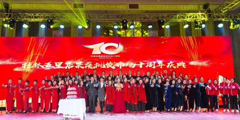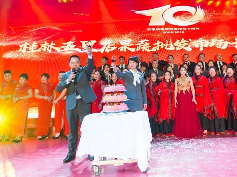 2019年12月22日,桂林五里店果蔬批發(fā)市場十周年慶典活動在市場和桂林香格里拉大酒店隆重舉行。社會各界受邀嘉賓、市場商戶和萬禾公司領(lǐng)導(dǎo)及員工參與活動,用多種方式共同歡慶五里店果蔬批發(fā)市場開業(yè)十周年。