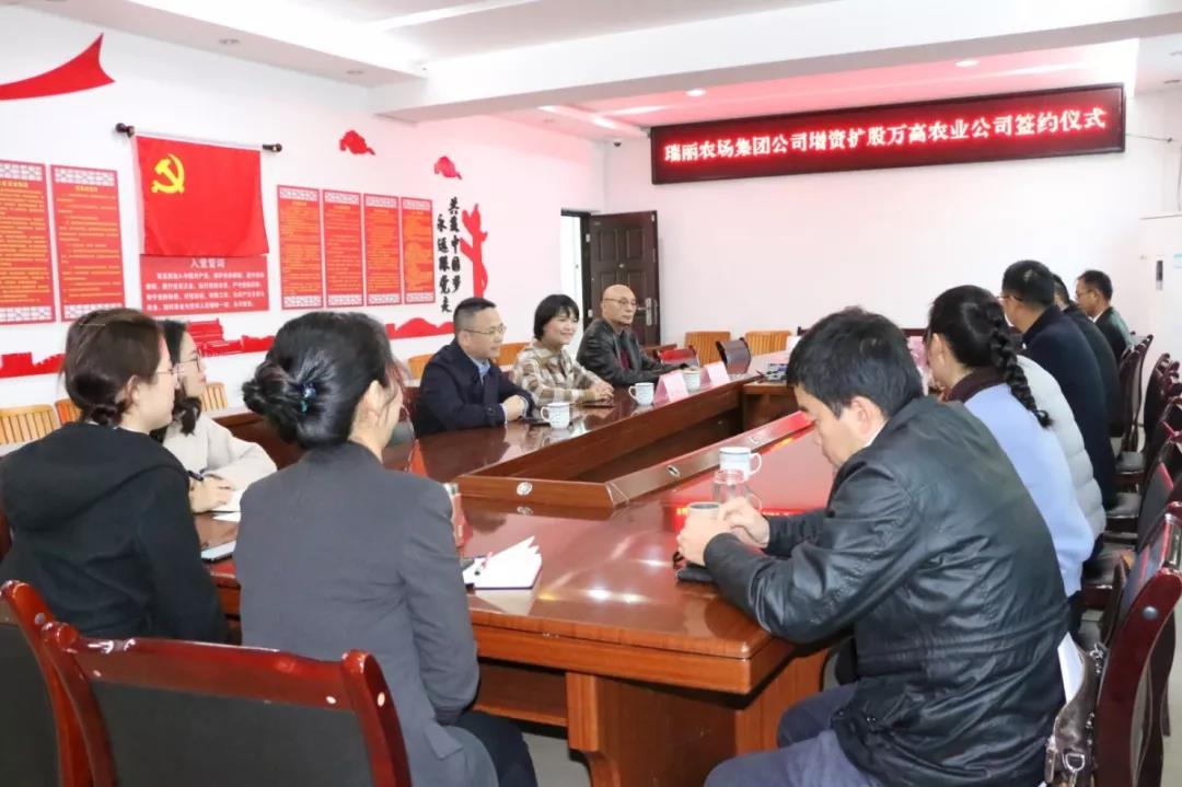 ▲瑞麗農(nóng)場集團增資擴股萬高農(nóng)業(yè)公司簽約儀式現(xiàn)場