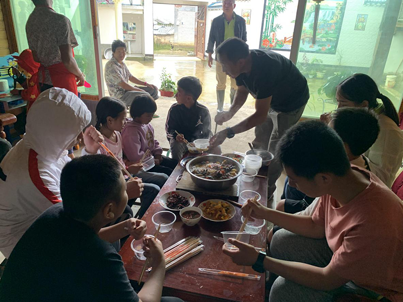 在戶撒學(xué)員們深入貧困村與當(dāng)?shù)匦∨笥鸦ソY(jié)對子,給小朋友們帶了自己準(zhǔn)備好的小禮物,相互約定好好學(xué)習(xí);家長們也熱情的邀請學(xué)員們留下來吃午飯,品嘗到了最正宗的戶撒美食。