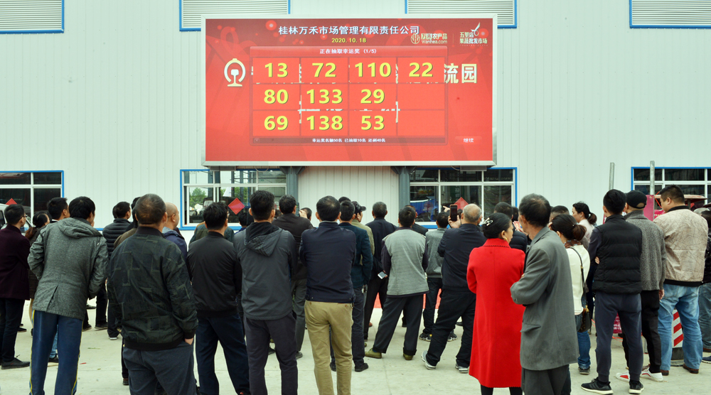 10月18日,在寧鐵桂林東—萬禾冷鏈物流園市場廣場,回饋抽獎活動圓滿舉行。憑票據(jù)換取抽獎券歷時近半個月時間,市場共計300百余戶采購商與商戶參與,豐厚的獎金激發(fā)了大家的熱情。