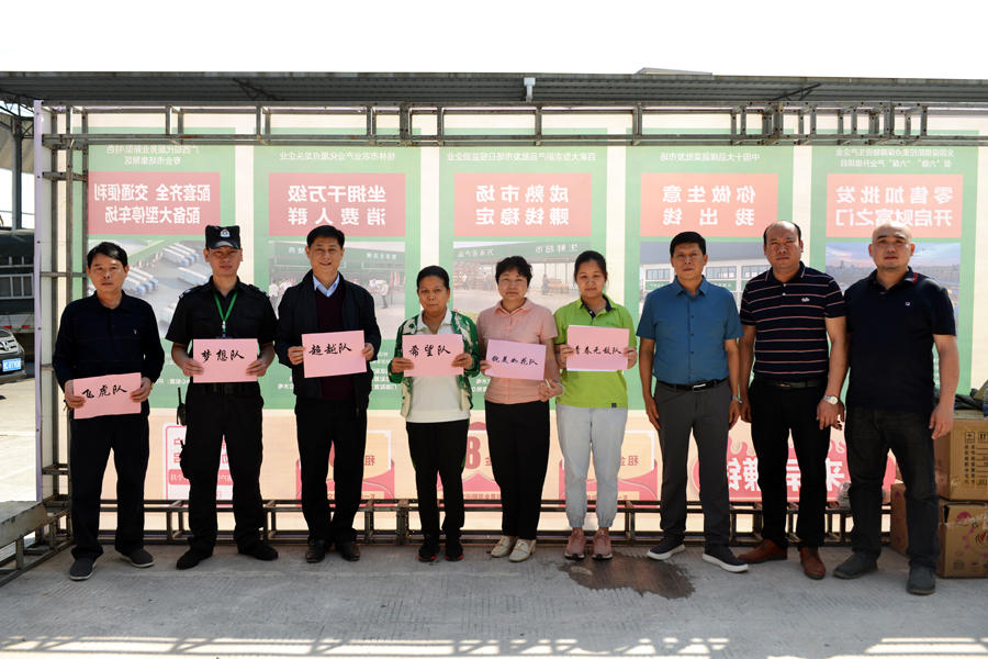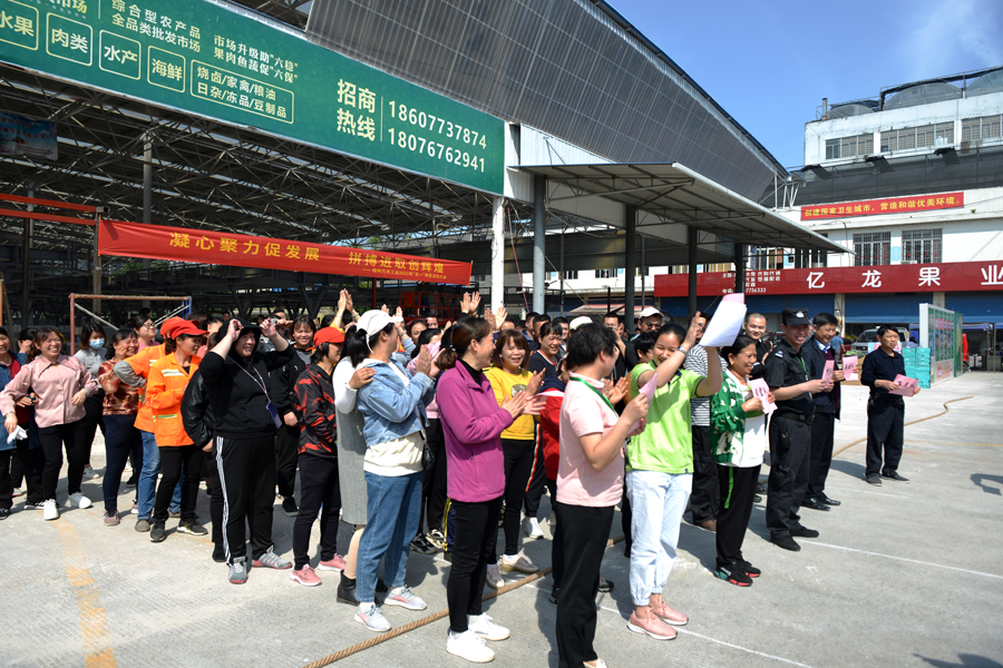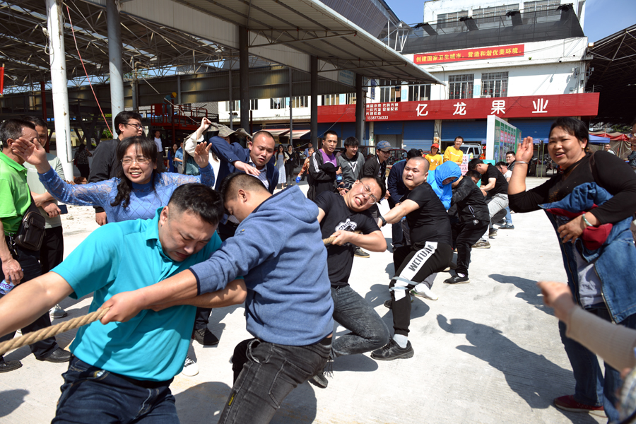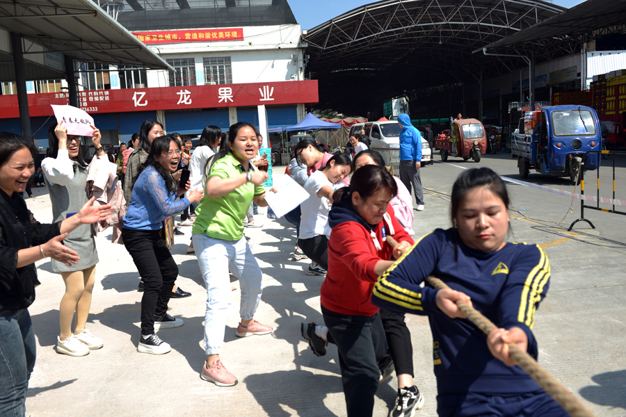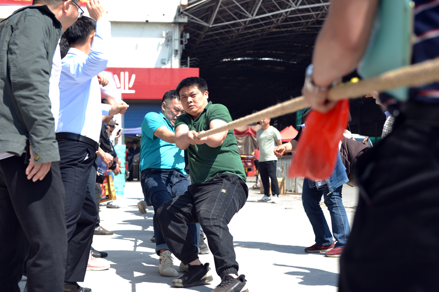 表彰大會結(jié)束后,參會人員移步到市場原蔬菜一區(qū)大棚前,一場火熱十足的拔河比賽拉開了序幕。