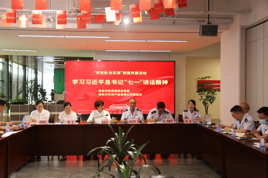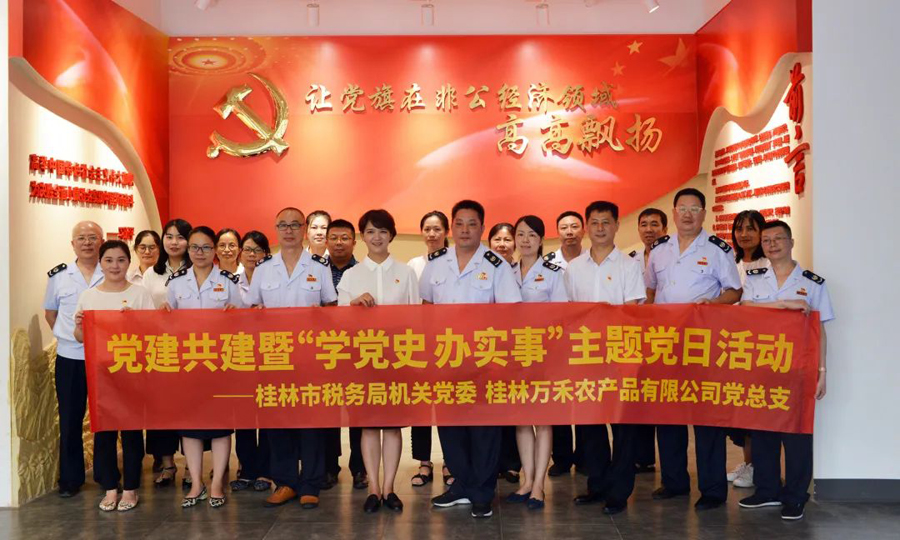 8月6日,桂林市稅務(wù)局機(jī)關(guān)黨委與桂林萬禾農(nóng)產(chǎn)品有限公司黨總支共同開展了“稅企共建+共促發(fā)展”黨建共建活動(dòng),此次活動(dòng)的主題是“學(xué)黨史 辦實(shí)事”,雙方20多名黨員參加了活動(dòng)。