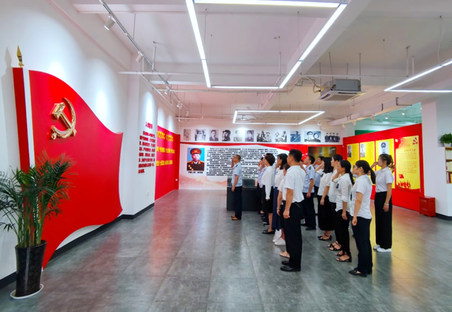 參觀黨員活動(dòng)基地結(jié)束后,雙方黨員面對(duì)黨旗,共同舉行了重溫入黨誓詞儀式。