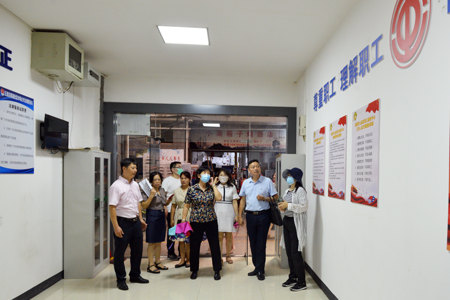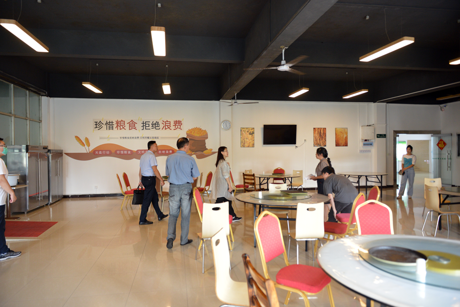 ▲專(zhuān)家組一行對(duì)餐飲區(qū)進(jìn)行檢查評(píng)定