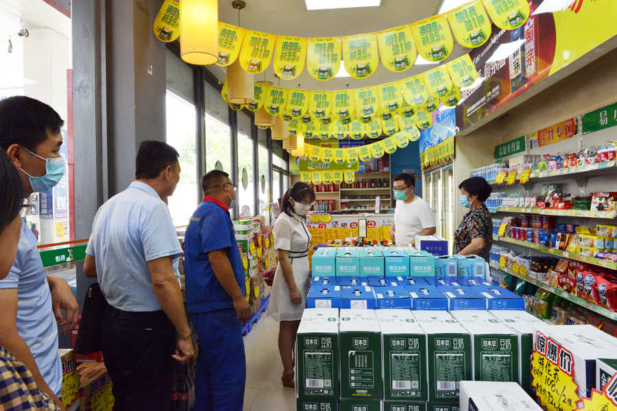 ▲專(zhuān)家組一行對(duì)便利店功能區(qū)進(jìn)行檢查評(píng)定