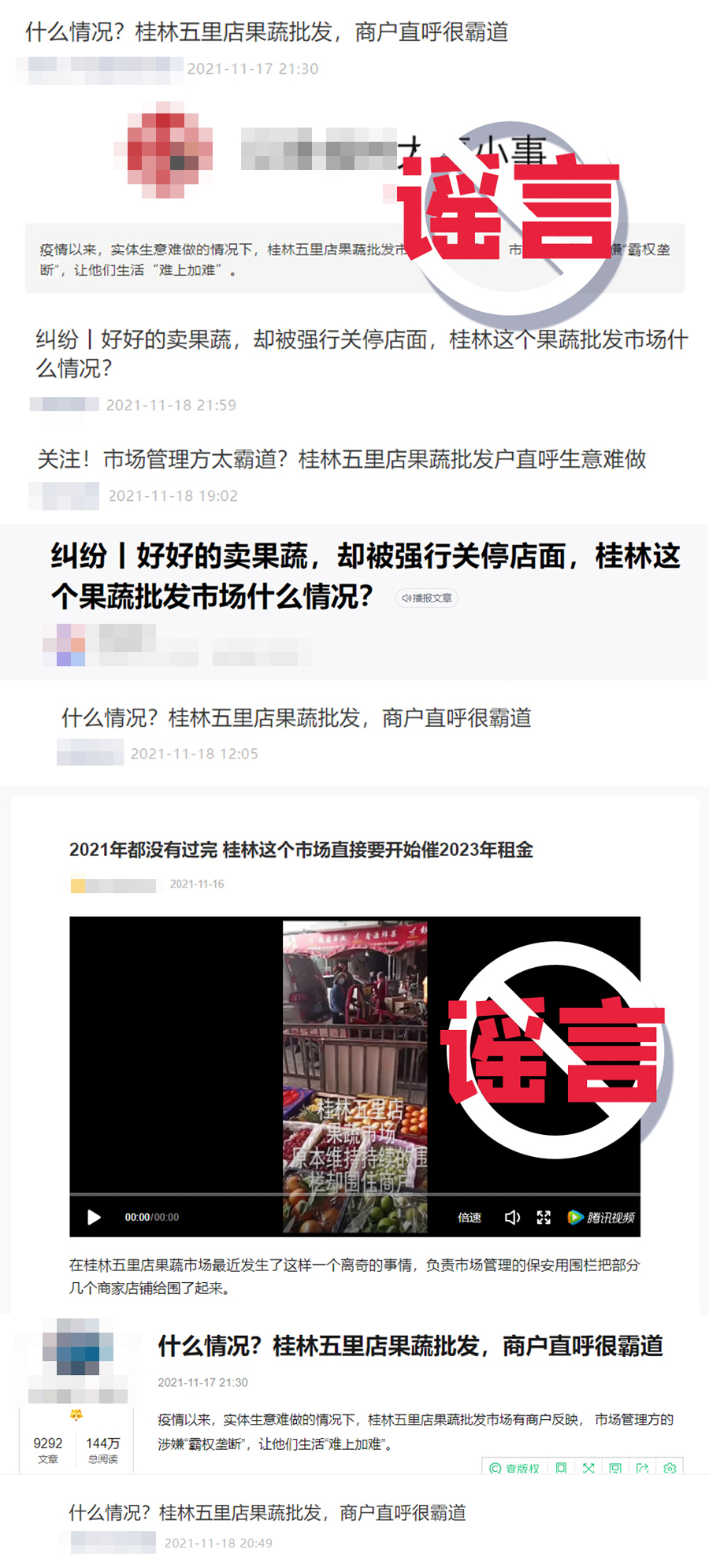 桂林萬禾市場管理有限責任公司與桂林五里店果蔬批發(fā)市場原商戶黃某某租賃合同糾紛事件,有人在部分媒體上發(fā)表“無視法律、擾亂經(jīng)營、霸權壟斷”等不實的內(nèi)容,經(jīng)過散布發(fā)酵已對我公司商譽造成嚴重不良影響,侵犯了公司的名譽權。對此,公司將保留對侵權者追究法律責任的權利。