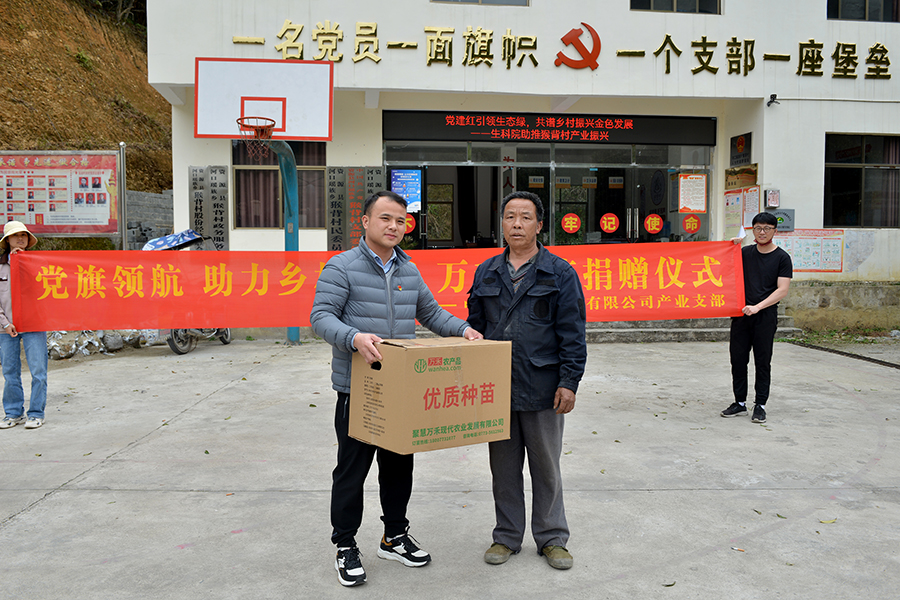 3月10日,中共萬(wàn)禾農(nóng)產(chǎn)品有限公司產(chǎn)業(yè)支部攜手桂林聚慧萬(wàn)禾現(xiàn)代農(nóng)業(yè)發(fā)展有限公司前往資源縣河口瑤族鄉(xiāng)猴背村開展“黨旗領(lǐng)航 助力鄉(xiāng)村振興”為主題的百香果種苗捐贈(zèng)活動(dòng)。