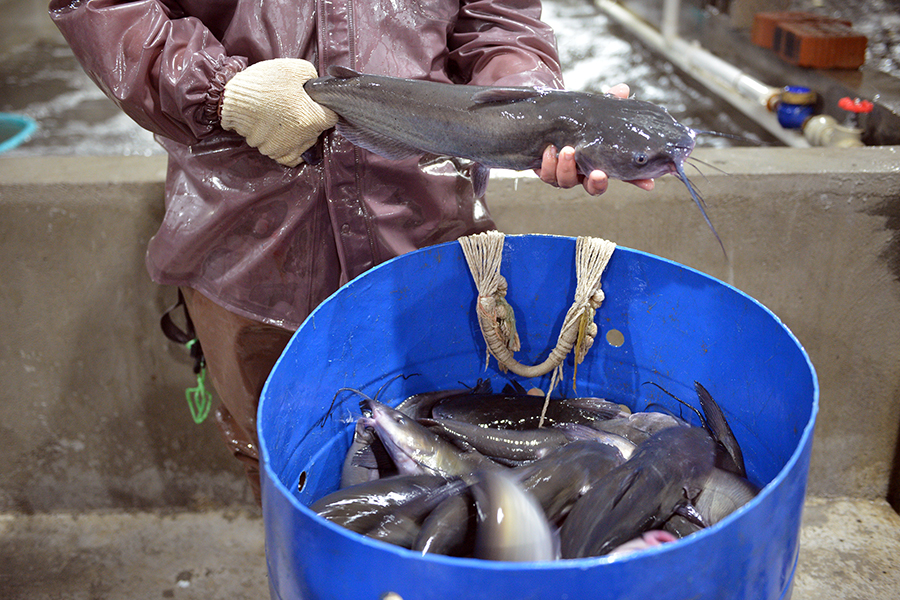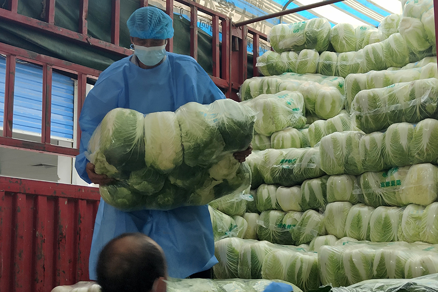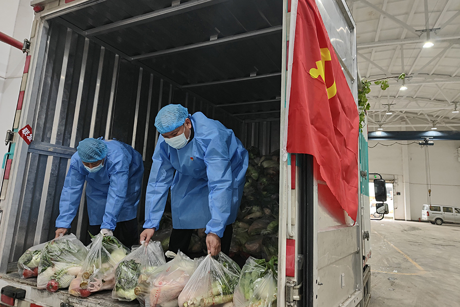 ▲工作人員對各類農(nóng)產(chǎn)品進行打包裝車