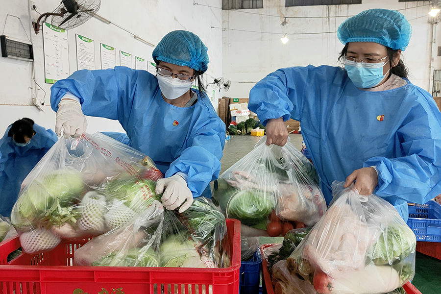 凌晨2點多,萬禾配送中心采購人員便奔赴到貨源地、批發(fā)市場,為配送生活物資“安心包”做足貨源準(zhǔn)備。質(zhì)檢人員第一時間對貨源進行抽樣檢測,把好質(zhì)量安全關(guān)。分選人員穿戴整齊,通過分工明確的分揀程序,將每一份“安心包”分揀打包完畢。配送人員裝備好車輛,精選配送路線,保證生活物資“安心包”及時運送到達。