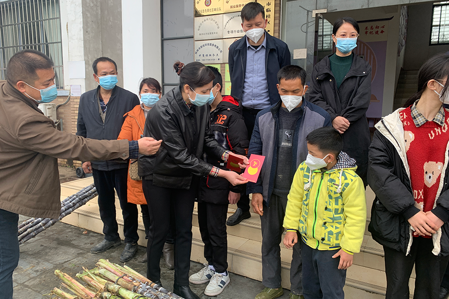 1月13日,在桂林市婦女聯(lián)合會的指導下,桂林市婦女聯(lián)合會黨組書記、主席陳薇薇,桂林市婦女聯(lián)合會副主席林玉潔,廣西桂林聚慧投資集團有限公司黨委專職副書記、工會主席蔣紅梅,萬禾集團黨總支副書記夏四初一行來到臨桂區(qū)中庸鎮(zhèn)穴田村,以走訪、座談等多種形式慰問自2022年6月以來建立結對幫扶、持續(xù)愛心助學的9戶困境學生家庭,為他們送去黨和政府、婦聯(lián)組織以及社會愛心企業(yè)的溫暖與關懷。