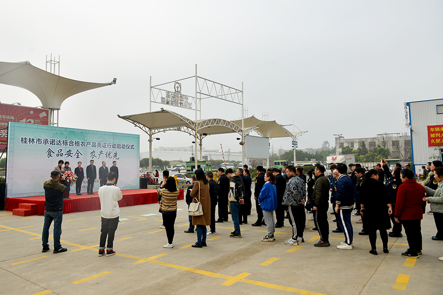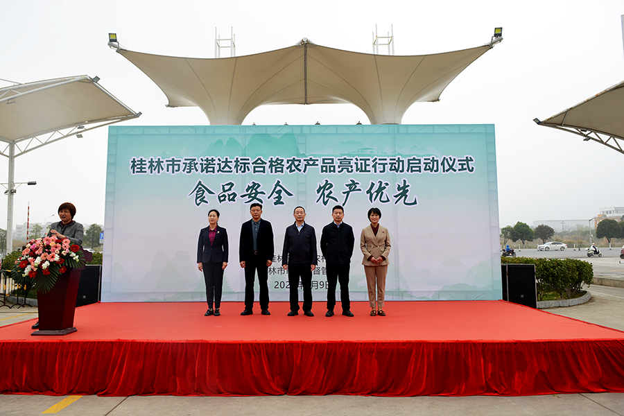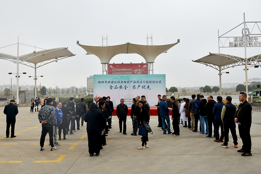 3月9日上午,桂林市農(nóng)業(yè)農(nóng)村局、桂林市市場監(jiān)督管理局在萬禾桂林東站冷鏈物流園東門舉辦“桂林市承諾達(dá)標(biāo)合格農(nóng)產(chǎn)品亮證行動(dòng)啟動(dòng)儀式”。