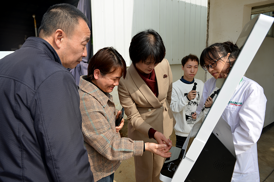 ▲工作人員演示使用“食安溯源”系統(tǒng)開具食用農(nóng)產(chǎn)品承諾達(dá)標(biāo)合格證