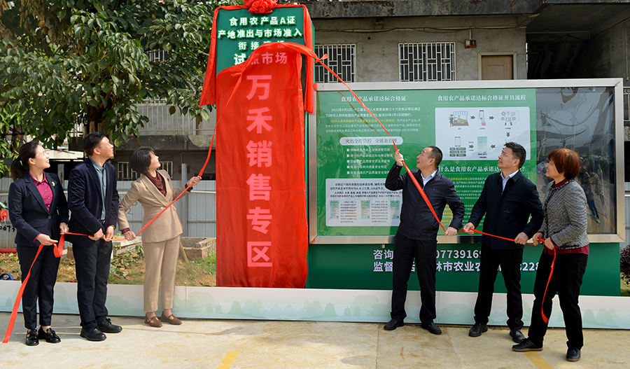 ▲食用農(nóng)產(chǎn)品A證產(chǎn)地準(zhǔn)出與市場準(zhǔn)入銜接試點(diǎn)市場萬禾銷售專區(qū)揭牌