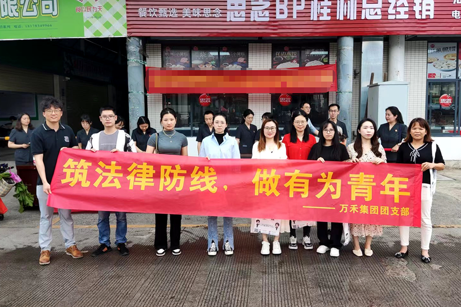 5月4日上午,桂林市中級(jí)人民法院聯(lián)合桂林市七星區(qū)人民法院組織青年干警到萬禾集團(tuán)開展五四青年節(jié)主題黨日聯(lián)建共建活動(dòng),走進(jìn)萬禾集團(tuán)黨建活動(dòng)基地詳細(xì)了解企業(yè)黨組織基本情況及近年來企業(yè)發(fā)展成果,并開展“電信網(wǎng)絡(luò)詐騙現(xiàn)狀及防范”主題宣講,深入五里店果蔬批發(fā)市場(chǎng)進(jìn)行普法宣傳,萬禾集團(tuán)副總經(jīng)理龍海隨行陪同。
