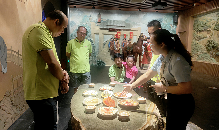 在桂花公社景區(qū),萬禾集團黨總支副書記夏四初一行在講解員的帶領下,先后參觀了桂花公社黨史主題館和桂花文化體驗館,大家通過講解員聲情并茂的解說和沉浸式5D短片演示,詳細了解了中國共產(chǎn)黨百年歷史,回顧了中國共產(chǎn)黨不屈不撓、英勇奮斗的發(fā)展歷程,深切感受中國共產(chǎn)黨百年光輝歷史和取得的偉大成就。身臨其境地了解了桂林桂花的起源和歷史典故,感受桂林桂花的深厚文化底蘊。