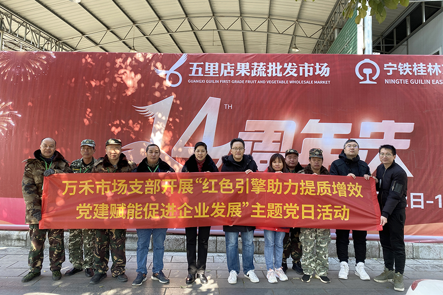 14年前的今天,桂林五里店果蔬批發(fā)市場(chǎng)開(kāi)業(yè),這里是萬(wàn)禾集團(tuán)的起點(diǎn),也是穿山村、和平村村集體經(jīng)濟(jì)公司化運(yùn)營(yíng),多元化發(fā)展、資源整合、市場(chǎng)化運(yùn)作、改革創(chuàng)新的一次實(shí)踐。14年來(lái),萬(wàn)禾集團(tuán)始終堅(jiān)持把黨建工作貫穿于企業(yè)發(fā)展的全過(guò)程,按照“圍繞發(fā)展抓黨建,抓好黨建促發(fā)展”的總體思路,牢固樹(shù)立“黨建強(qiáng)、企業(yè)興”的發(fā)展理念,用黨建指引企業(yè)發(fā)展方向,不斷創(chuàng)新黨建工作模式機(jī)制,催生企業(yè)發(fā)展動(dòng)力。在桂林市兩新組織黨工委的指導(dǎo)下,在實(shí)踐中逐漸摸索出一條符合要求、切合實(shí)際,黨建工作與經(jīng)營(yíng)管理、業(yè)務(wù)發(fā)展高度融合、同頻共振的共建之路。萬(wàn)禾集團(tuán)黨總支先后獲得“桂林市基層黨建工作一級(jí)示范點(diǎn)”“自治區(qū)兩新組織黨建工作示范點(diǎn)”“桂林市基層黨建高標(biāo)準(zhǔn)示范點(diǎn)”“自治區(qū)小個(gè)專黨建工作示范點(diǎn)”“桂林市兩新組織黨建工作先進(jìn)基層黨組織”等榮譽(yù)。