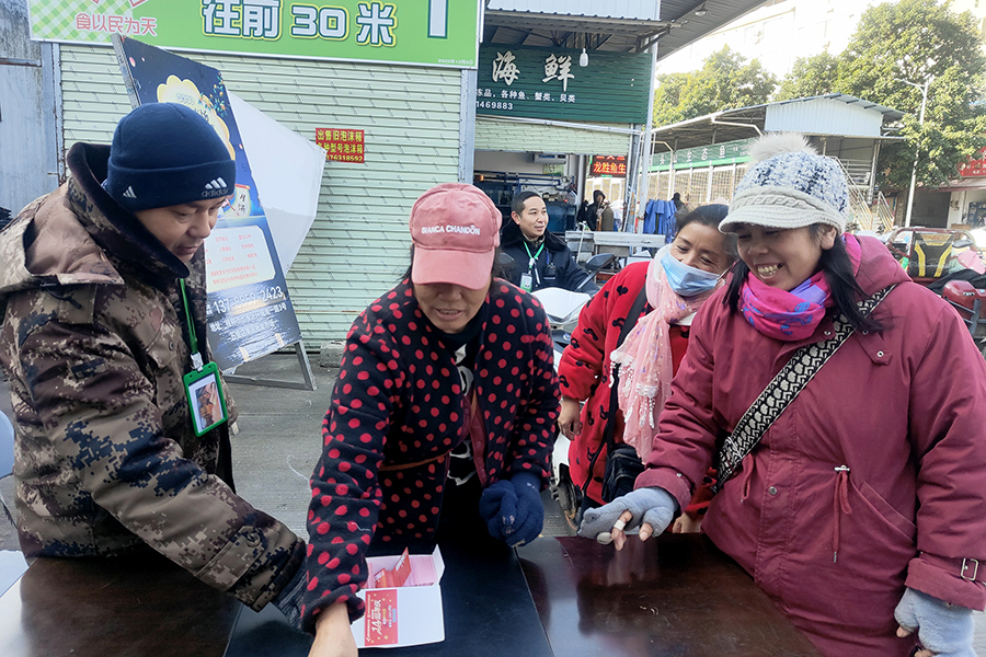 為回饋廣大采購(gòu)客商,12月22日至12月24日期間,萬(wàn)禾市場(chǎng)支部組織黨員干部及市場(chǎng)各職能部門職工在桂林五里店果蔬批發(fā)市場(chǎng)、寧鐵桂林東萬(wàn)禾冷鏈物流園各出入口設(shè)點(diǎn),現(xiàn)場(chǎng)開(kāi)展“刮卡抽獎(jiǎng),中獎(jiǎng)率100%”活動(dòng),通過(guò)開(kāi)展各項(xiàng)活動(dòng),有效帶動(dòng)桂林五里店果蔬批發(fā)市場(chǎng)和寧鐵桂林東萬(wàn)禾冷鏈物流園農(nóng)產(chǎn)品銷售,為萬(wàn)禾市場(chǎng)又好又快發(fā)展奠定堅(jiān)實(shí)基礎(chǔ)。