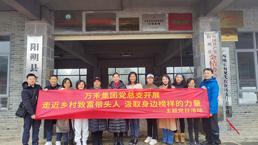 為深入學(xué)習(xí)貫徹黨的二十大精神和習(xí)近平新時(shí)代中國(guó)特色社會(huì)主義思想,營(yíng)造學(xué)習(xí)榜樣、弘揚(yáng)正氣、傳遞先進(jìn)力量的濃厚氛圍,充分發(fā)揮先進(jìn)典型示范引領(lǐng)作用,1月6日,萬(wàn)禾集團(tuán)黨總支組織黨員干部赴位于陽(yáng)朔縣白沙鎮(zhèn)蕉芭林村的桂林市黨員教育培訓(xùn)示范基地開展“走近鄉(xiāng)村致富帶頭人,汲取身邊榜樣的力量”主題黨日活動(dòng),萬(wàn)禾集團(tuán)副總經(jīng)理周雯、黨總支副書記夏四初參加活動(dòng)。