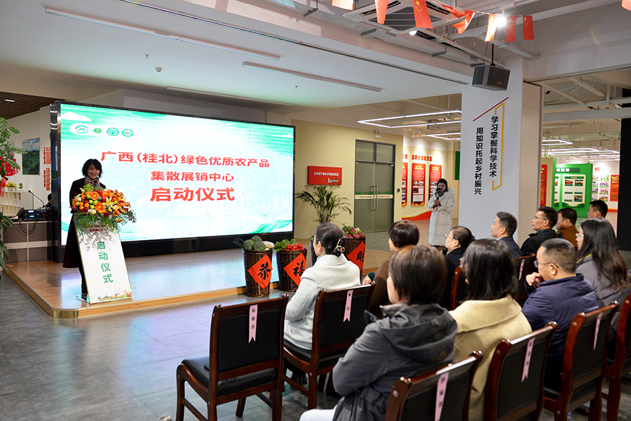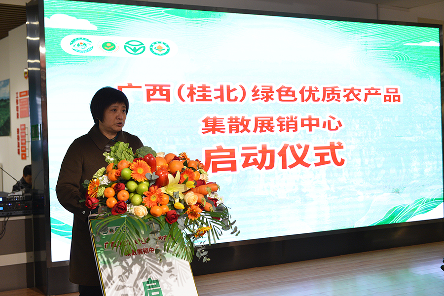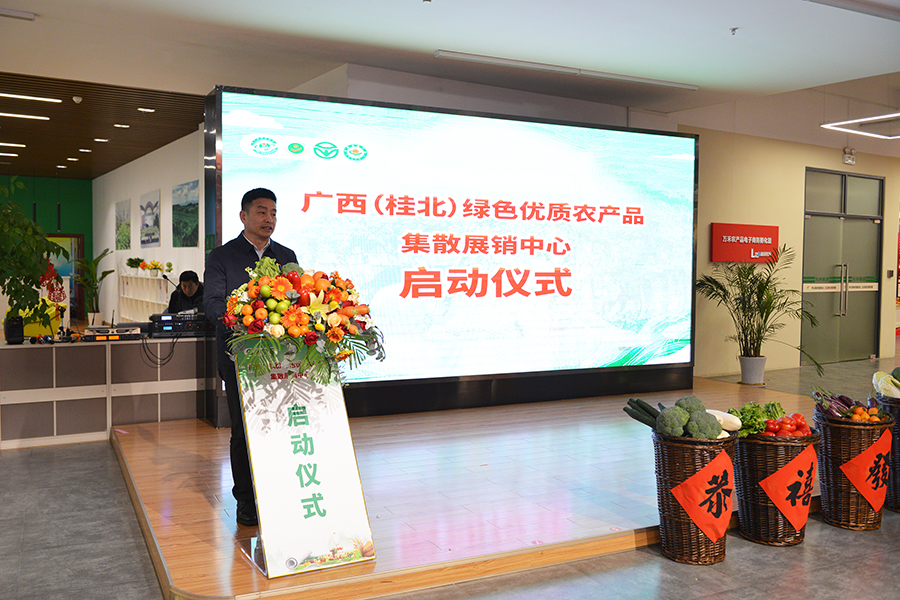 儀式現(xiàn)場,萬禾集團黨總支書記、總經(jīng)理崔萌佳首先介紹了廣西(桂北)綠色優(yōu)質(zhì)農(nóng)產(chǎn)品集散展銷中心概況,桂林市農(nóng)業(yè)農(nóng)村局副局長叢莉就桂林市農(nóng)業(yè)產(chǎn)業(yè)發(fā)展相關(guān)情況進行發(fā)言,自治區(qū)綠色食品發(fā)展站站長莫建軍就廣西綠色優(yōu)質(zhì)農(nóng)產(chǎn)品發(fā)展相關(guān)情況發(fā)表講話,自治區(qū)農(nóng)業(yè)農(nóng)村廳農(nóng)產(chǎn)品質(zhì)量安全監(jiān)管處副處長葛維宣布廣西(桂北)綠色優(yōu)質(zhì)農(nóng)產(chǎn)品集散展銷啟動中心啟動。