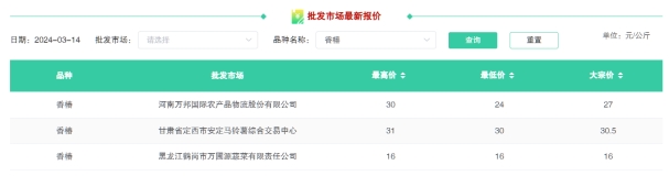 2024年2月14日至3月14日期間全國農(nóng)產(chǎn)品批發(fā)市場香椿平均價格。截圖自全國農(nóng)產(chǎn)品批發(fā)市場價格信息系統(tǒng)
